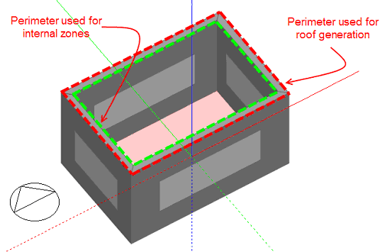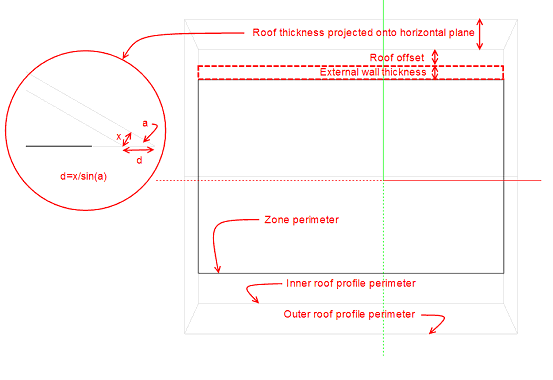 Roof perimeter blocks are created behind the scenes by first generating a conventional plan extrusion using the current external wall thickness and then generating the roof inner profile topology from the resulting block outer perimeter:
