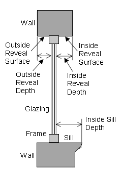 For external windows on walls the following dimensions in the direction of the glazing normal can also be entered: