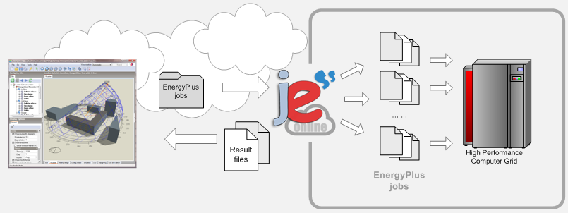JESS (Java EnergyPlus Simulation Server) is a software system developed by Ensims to provide remote simulation solutions to EnergyPlus users. JESS Online is a service which runs time-consuming simulation jobs on Ensims' high-performance computers.