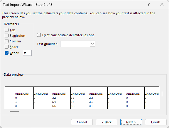The file uses the "#" character as a field delimiter which is non-standard for external tools. To load the file into Excel, you should follow these steps: