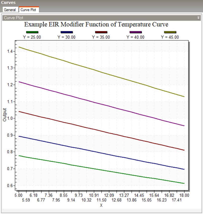 Vertical axis (Output): The curve's output value (e.g., EIR modifier, capacity modifier)