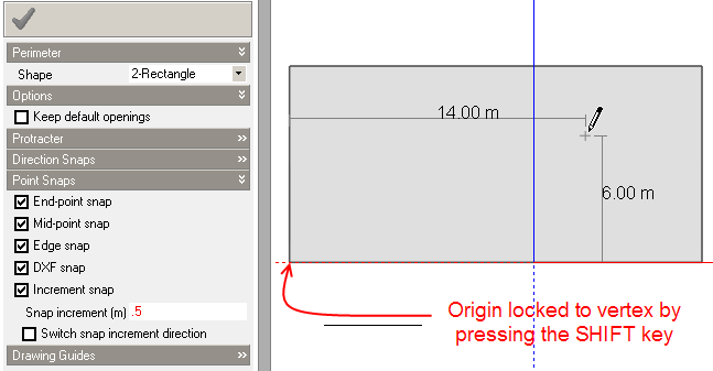 Having placed the window origin, you can then draw the window using the selected perimeter drawing mode, for details of drawing perimeters please refer to the Perimeters section.