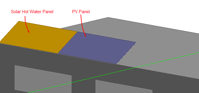 Note: In cases where a solar collector is placed on a building surface (e.g. on a pitched roof surface) it is not modelled as being thermally coupled with the underlying surface by default, but it does cast a shadow like any other block or shading surface.