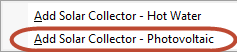 2. Select the type of collector from the pop-up menu. For example to add a PV panel, select the Add solar collector - Photovoltaic option.