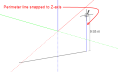 If the axis snap is operating on a horizontal plane, the perimeter line will change colour to red if the line is snapped to the X-axis or green if it's snapped to the Y-axis. However if the active drawing plane is not horizontal, the line will change colour to orange for the X-axis and purple for the Y-axis.