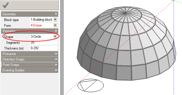 More information on using the Dome block form can be found in the Drawing arcs, circles and domes tutorial