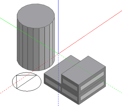 The various methods of drawing general extrusions are explained under Adding Blocks. Circular and rectangular perimeter shapes are used to create cylindrical and rectilinear prismatic extrusions from horizontal planes: