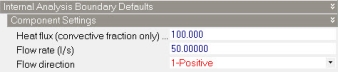 - Enter any heat flux added by the fan, the fan flow rate and the direction as shown in the screenshot below.