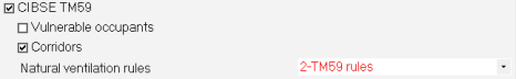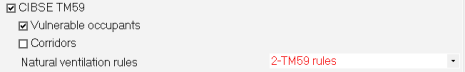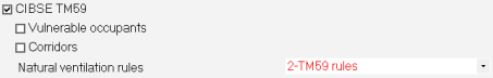 To reduce the chance of simultaneous heating and window opening, a control mechanism is implemented through the Apply TM59 natural ventilation rules calculation option. See discussion above under HVAC tab.