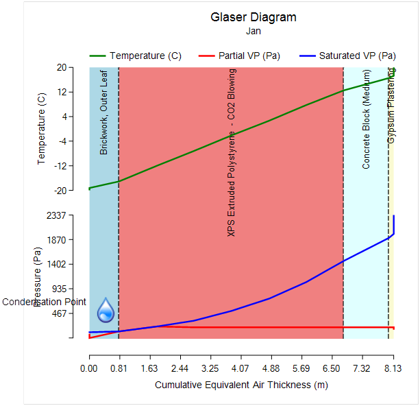 Check this option if you would like to view a Glaser diagram showing a graphical section through the construction with temperature, partial vapour pressure and saturated vapour pressure data plotted.