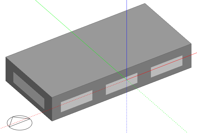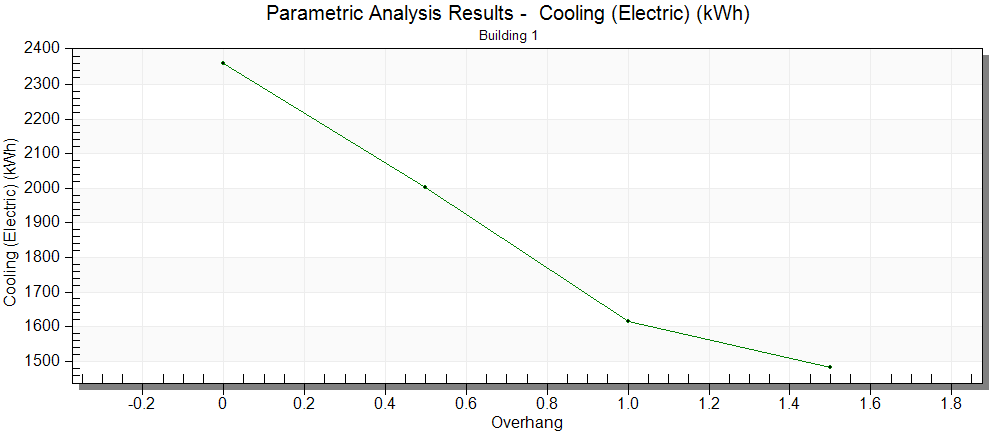 Note: The tutorial demonstrates how to test the impact of various rectangular shading overhangs on building cooling energy. To help focus on the main learning points the shading case being modelled is a very simple one that could actually have been implemented more easily using the Local shading overhang mechanism. However note that much more geometrically complex shading configurations can also be tested through a process very similar to the one demonstrated in this tutorial.