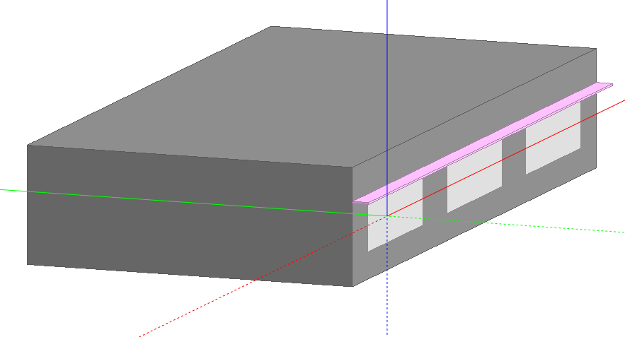 1. Draw a component block above the windows on the south façade to represent the 0.5m overhang case. The model should look like this.