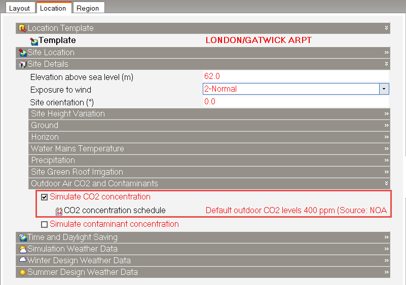 Step 7 - Go to Site level and enable the Simulate CO2 concentration site level option.