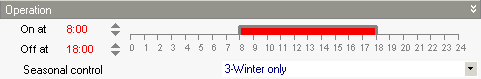 The Seasonal control data allows you to set times when the equipment is switched off altogether. For example the heating system data shown below indicates that the heating system will be switched on during the winter only and switched off in the summer.