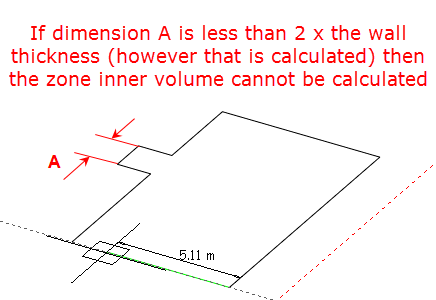 When using 1-Inner Zone geometry and surface areas option, DesignBuilder creates an "inner volume" by moving all zone surfaces inwards using the construction thicknesses (or fixed thicknesses where specified). This process is called "deflation". In some cases, however the deflation process is not possible and the inner volume cannot be generated. The two main reasons for this failure are: