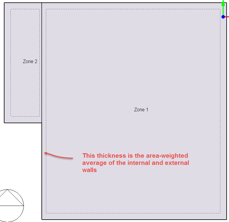 Tip: For zones with walls that have a finite thickness, this floor area will not be the same as the total area of the floor surfaces listed in the Navigator, whose geometry is based on the Zone geometry and surface areas method.