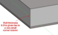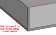 1. When the resulting inner volume geometry will not physically fit, often due to the surface thickness being too great. Examples of this situation include small kinks in the surface geometry with dimension of 2 x the surface thickness or less (image below) and zones where there are acute angle corners and thick wall constructions.