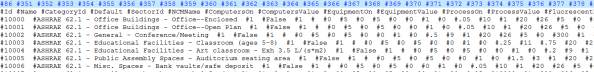 9. A common requirement is to create compact schedules from data from other sources (e.g. measurements or energy code references). You can use the above procedures for this by adding schedule records to Schedules.cdt. Compact schedule data is stored in the field CompactData. Note that end of lines are marked by "|^" sequences. So a compact schedule like: