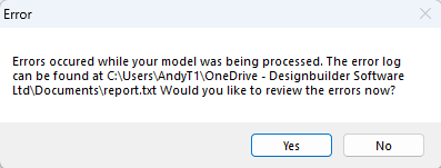 Click Yes to open the error log file in the application associated with the .txt file extension, typically a text editor such as Notepad.