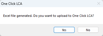 5. Once the report has been created, you will be asked whether you would like to upload it to One Click LCA.