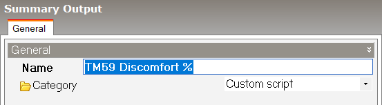 Important Note: The name, "TM59 Discomfort %", entered here on the Summary Outputs dialog must match the text written to field 0 of the record added to the "ParamResultsTmp" table in the script. You may like to copy the name and paste it somewhere safe where you can easily access it later when writing the script.