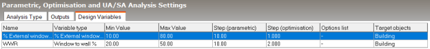 3.d Keep the default Building target so that the % opening area varies similarly in all external windows and press OK to complete the definition of the % External window opens variable.