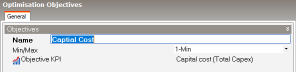 Select the Capital cost (Total Capex) KPI and call the objective "Capital Cost".