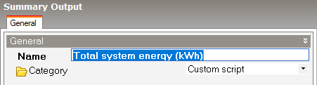 Important Note: The name, "Total system energy (kWh)", entered here on the Summary Outputs dialog must match the text written to field 0 of the record added to the "ParamResultsTmp" table in the script. You may like to copy the name and paste it somewhere safe where you can easily access it later when writing the script.