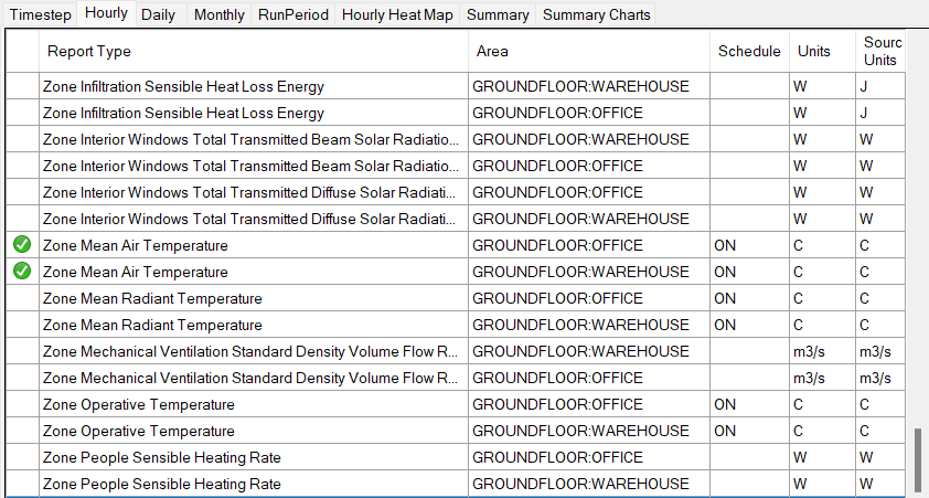 Source Units - the units of the report originally read in from the eso file. This may be different from the units used in the display, in particular for energy and power reports and for most reports when displaying results in IP units. This optional column is displayed only when the Display original dataset units in grid option is selected.