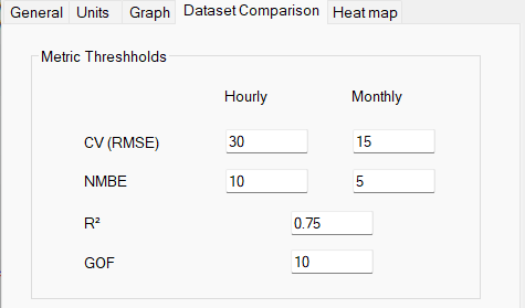 The default values for CV (RMSE) and NMBE are those recommended by ASHRAE.