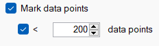Check this setting if you would like a dot to be displayed to represent each data value. The option provides a further level of control by allowing a threshold to be set. When there are more time points on the graph that this value the dots are suppressed.