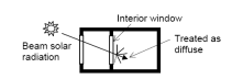If the Solar Distribution option is Minimal shadowing or Full exterior, it is assumed that all beam solar from exterior windows falls on the floor. If Solar Distribution is Full Interior and Exterior the program tracks where beam solar from exterior windows falls inside the zone, and wall as well as floor surfaces can receive beam radiation.