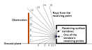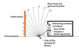 Two-dimensional schematic showing rays going upward from a ground hit point.