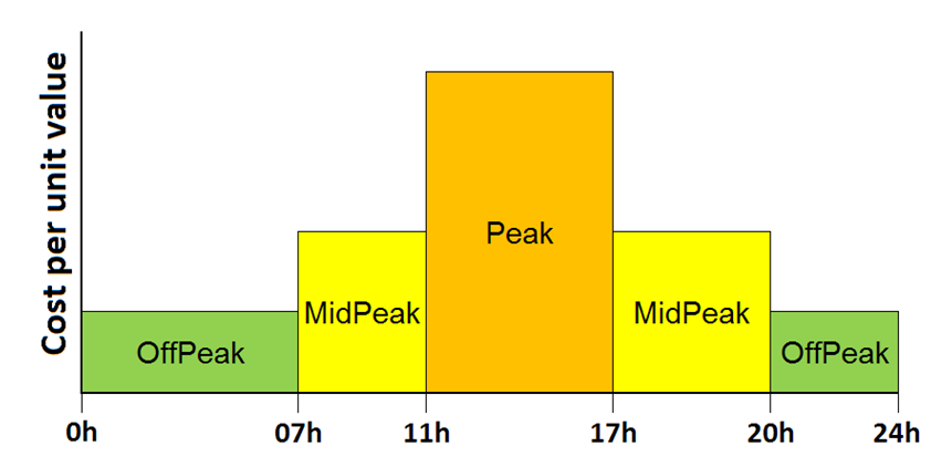 Note: Different utilities use different terms to describe their rates. Sometimes the "shoulder" and the term "midpeak" both mean basically the same thing. To define a time of use period schedule, you do not need always use all of these terms. For terms “Shoulder” and “MidPeak”, in DesignBuilder/EnergyPlus you can use either term as long as you use them consistently throughout the description of the utility tariff. Of course, you can use them both if the utility has four levels though it is very unusual.