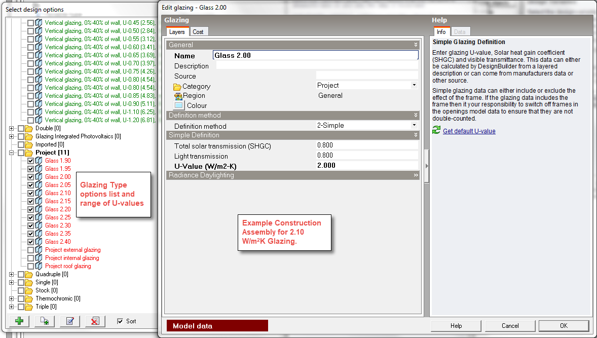 Note: Use the 2-Simple glazing Definition method where you can enter the U-value directly.