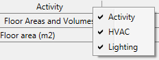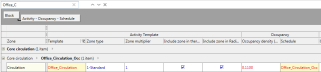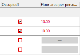 Cells that are not available for display or edit are shown with a grey background (see also above). In the case below the Floor area per person data cannot be edited if the zone is not occupied: