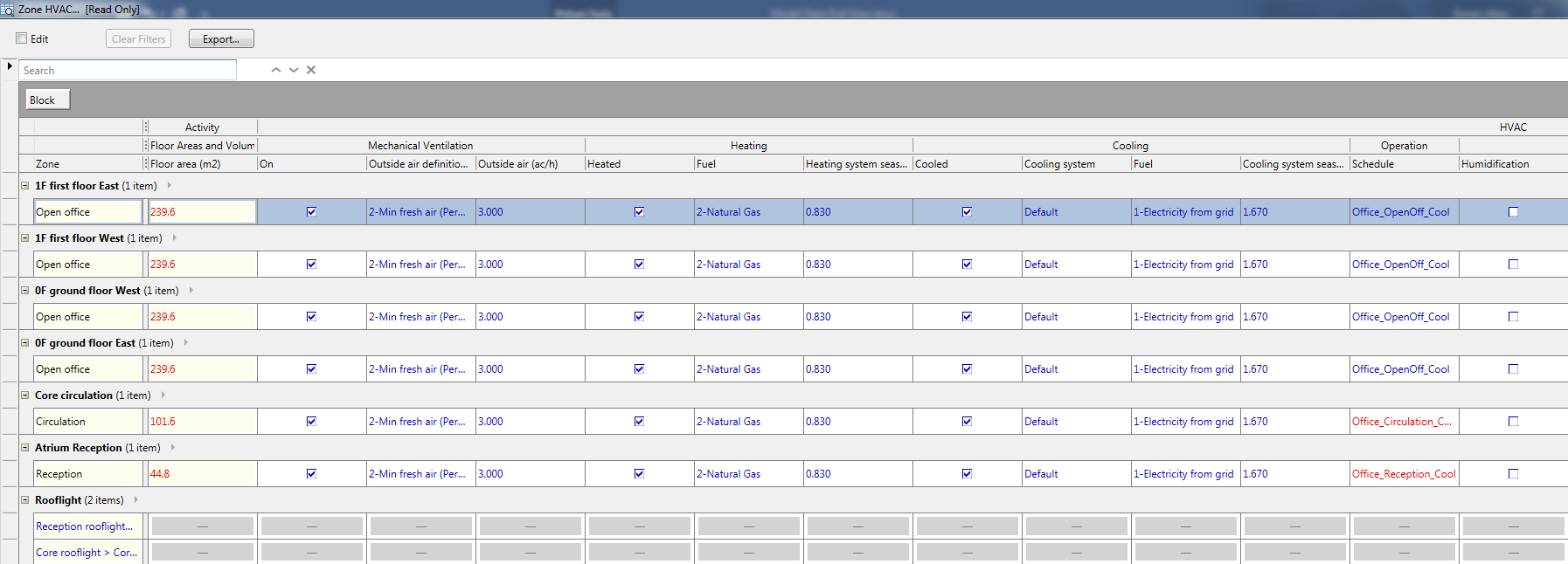 You should be especially careful with making changes to Detailed HVAC components some of which have complex rules to show/hide data based on other settings which have not yet implemented for the MDGV. More specifically, while the main HVAC component dialogs display only data that is relevant to selected options, the Grid edit HVAC views show all data settings regardless of whether they are relevant or not. The MDGV Layouts will be tidied in future to only show relevant settings, but in the meantime care is needed when using the MDGV for HVAC data to ensure that you are editing the right settings.