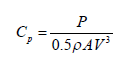 This is the maximum fraction of power extraction possible from the ambient wind and is required only when the 1-Simple Simulation method is selected. This value can be calculated from the power curve published in most manufacturers' specifications by using the kinetic energy equation as: