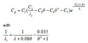 These six fields are the parameters for the power coefficient equation shown below. These fields are used to determine the power coefficient of the system. The analytical approximation model of the power coefficient in EnergyPlus is: