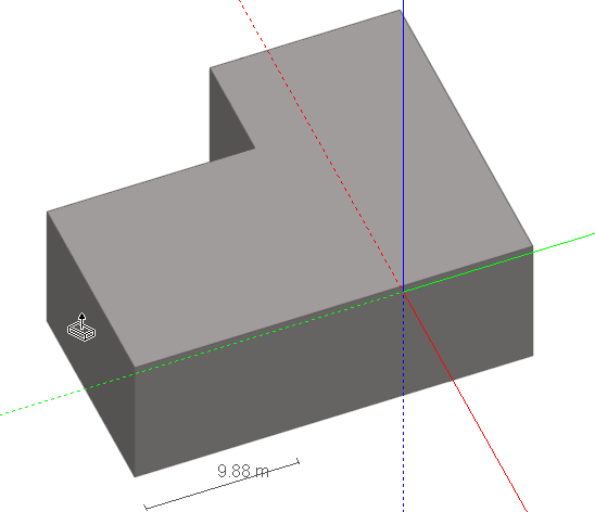 The topology of a block can be edited using the Drag face tool which allows you to select a block surface and drag it along an axis, normal to the surface. To edit a block topology first go to the building level and click on the Drag face tool.  Then move the mouse cursor to the block face that you want to move. As you move the cursor across the block surfaces, each surface will highlight to help in selecting the required surface. When the mouse cursor is over the required surface, click to start dragging it:
