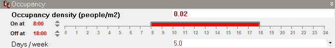 In above example there are 0.02 people per m2 between 8am and 6pm and there are no people outside these times and at weekends.