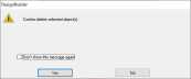 Check this option if you would like DesignBuilder to prompt you to confirm before deleting any objects in the model. You may need to use this option if you have previously checked the checkbox on the delete object dialog (below) and would now like to change back to the default behaviour of confirming before deleting.